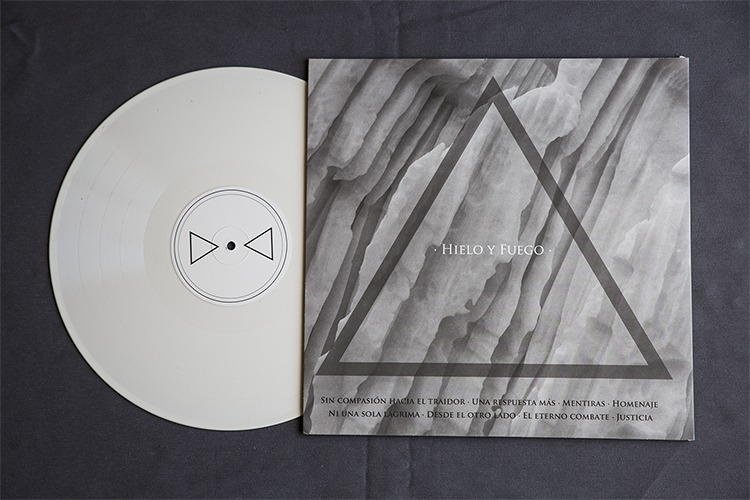 1991 – Hielo y fuego · Fabricación discos de vinilo 12″ · Vinilo blanco · Impresión cara reversa · Impresión 1/0 colores